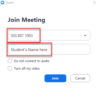 - Note the different MeetingID for the parent orientation and for the online classes.